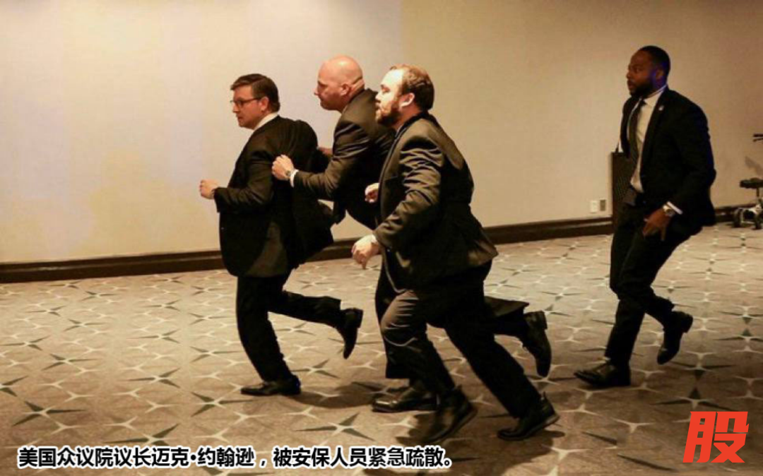 第一夫人梅拉尼娅被护送撤离,副总统万斯、国务卿鲁比奥、国防部长赫格塞思、众议院议长迈克·约翰逊等一众高官在安保人员的引导下化身“跑男”,紧急疏散。