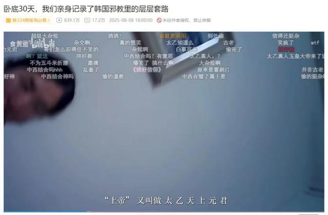 前阵子,B 站 up 主 @食贫道出了个"卧底进入韩国邪教"的视频,带我们粗粗领略了邪教的千层套路。
