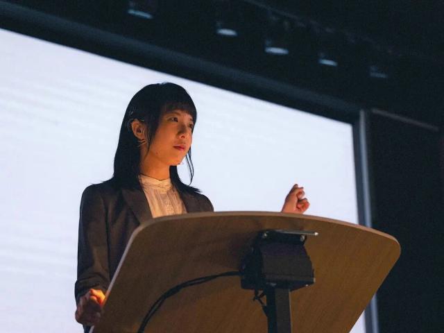 素恩在台上分享自己"战胜缺陷"的经历时,表示希望科技能"消除聋人",这番话激怒了台下的子信。